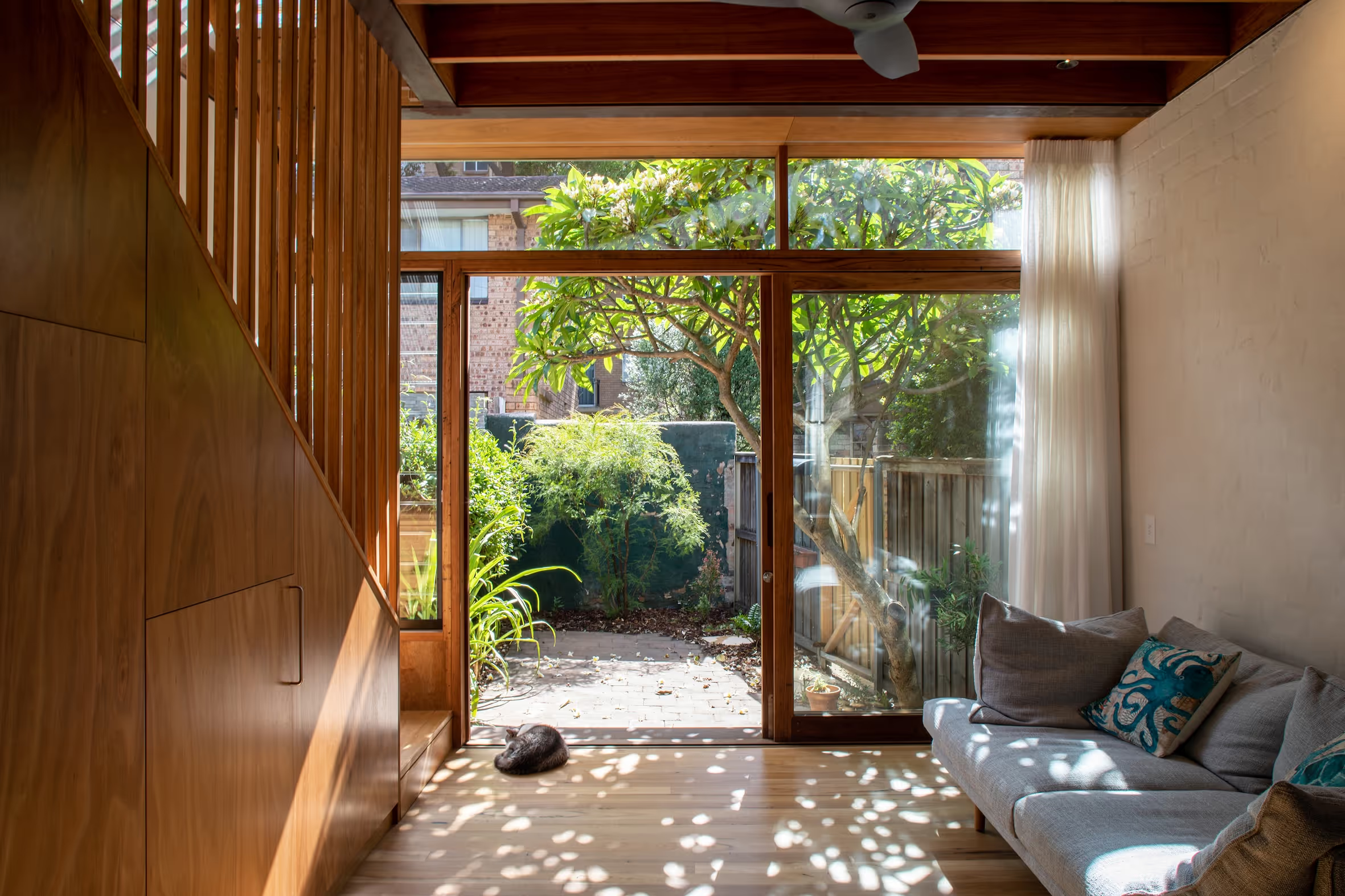 Large sliding door that either separates or combines the dining and lounge rooms.