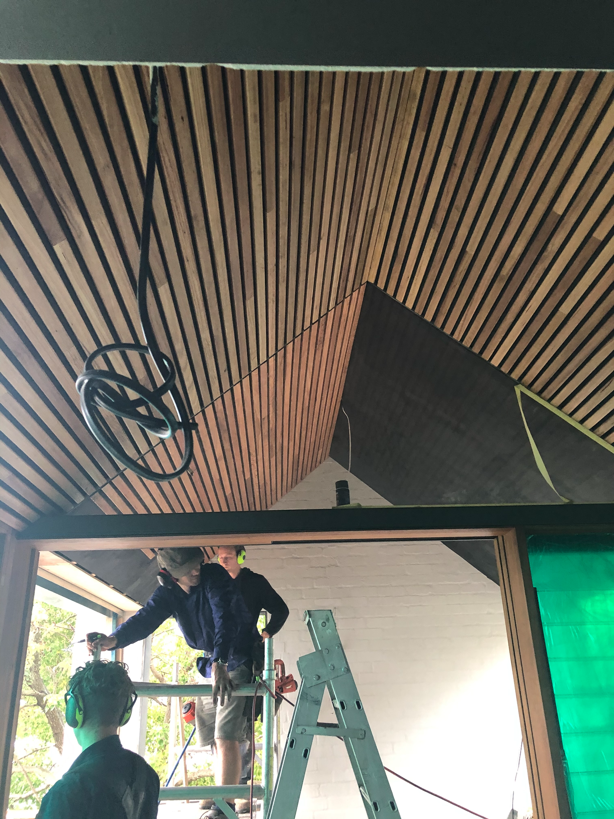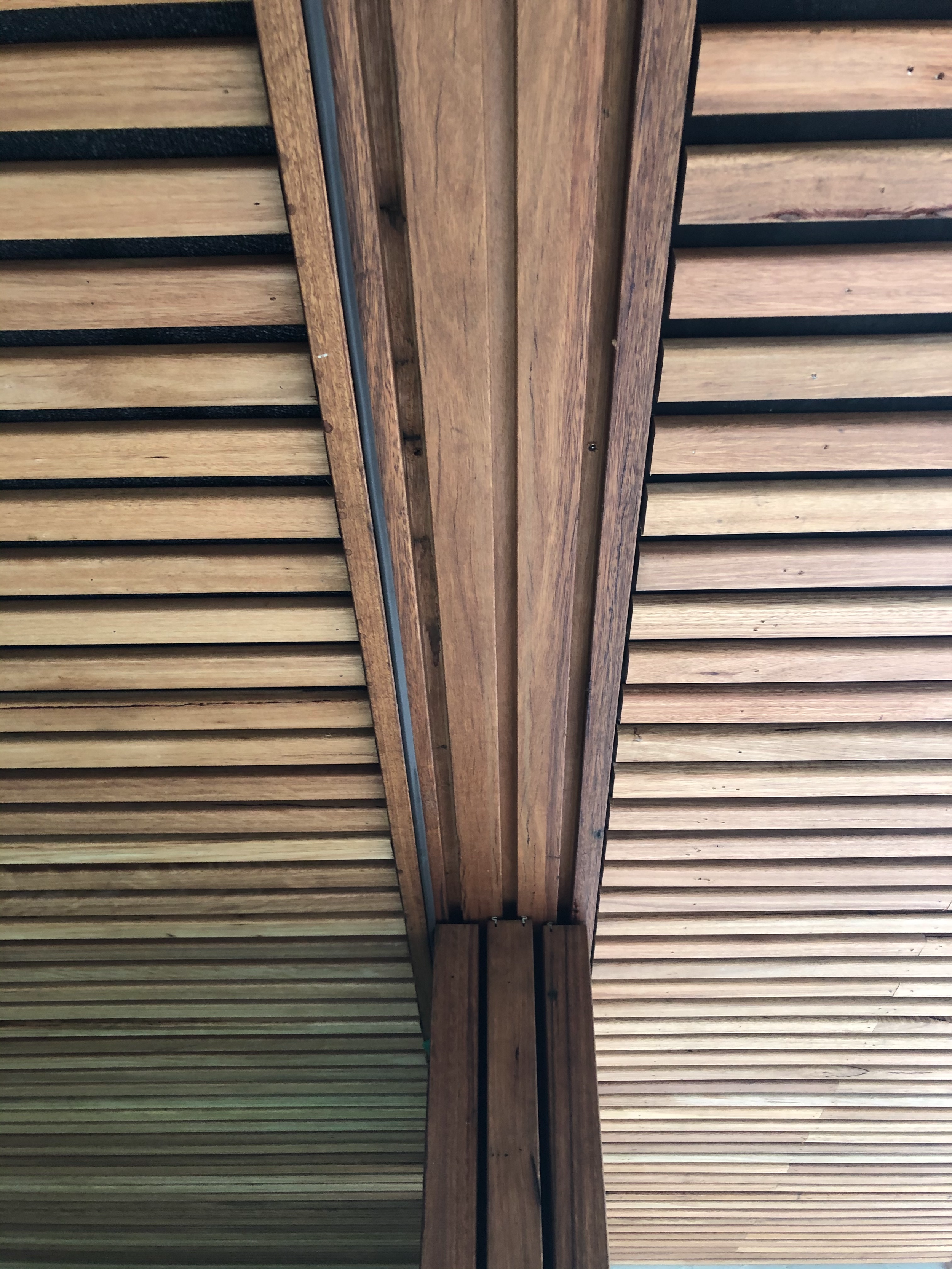 Timber batten ceiling lining.
